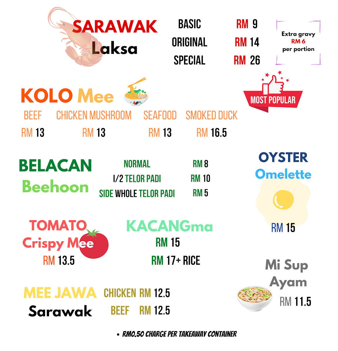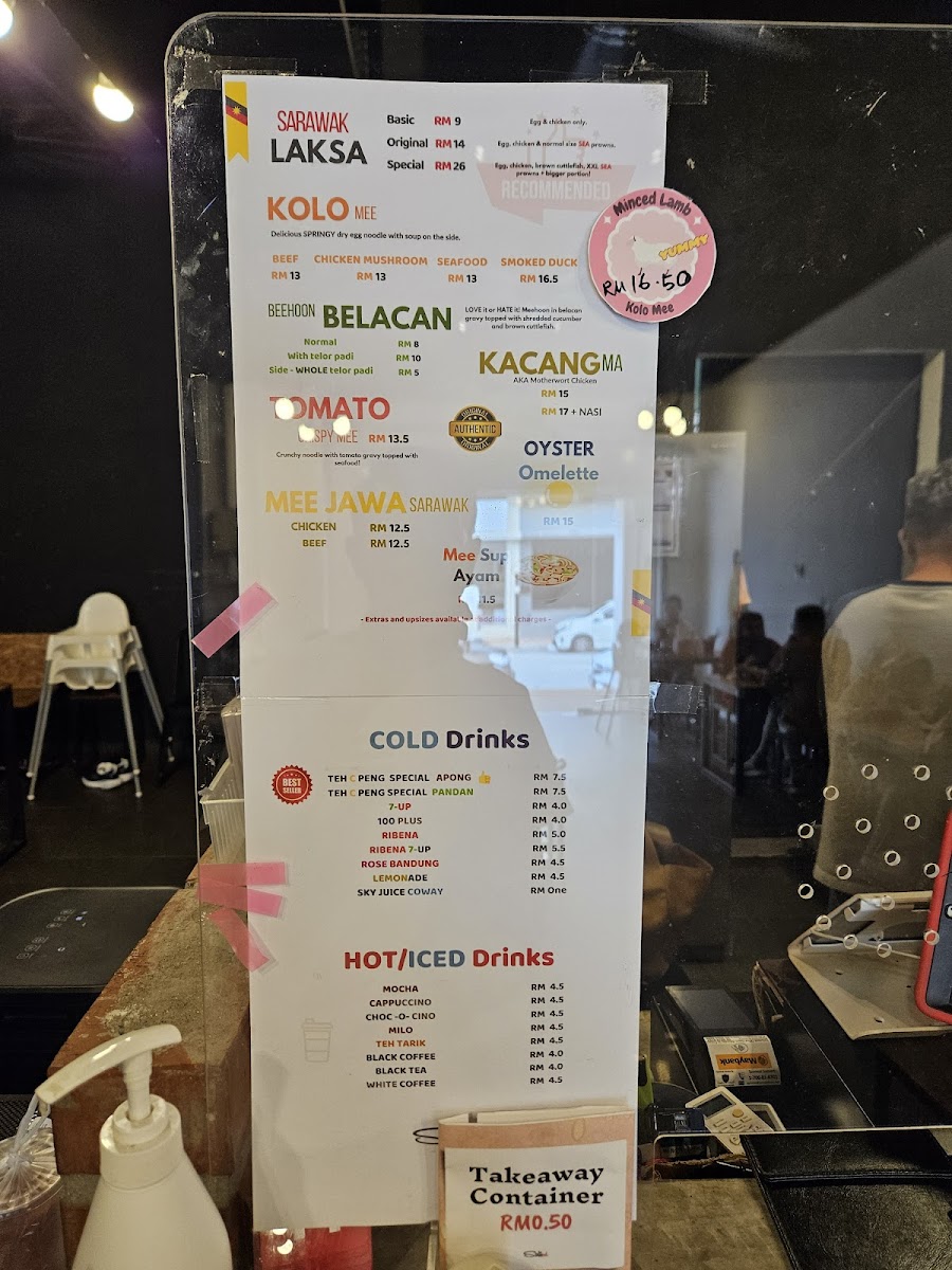 Overall, the menu emphasizes approachable dishes that fit well into everyday dining moments, whether grabbing a quick bite or settling in for a comforting meal that connects you to Sarawak’s culinary heritage.
