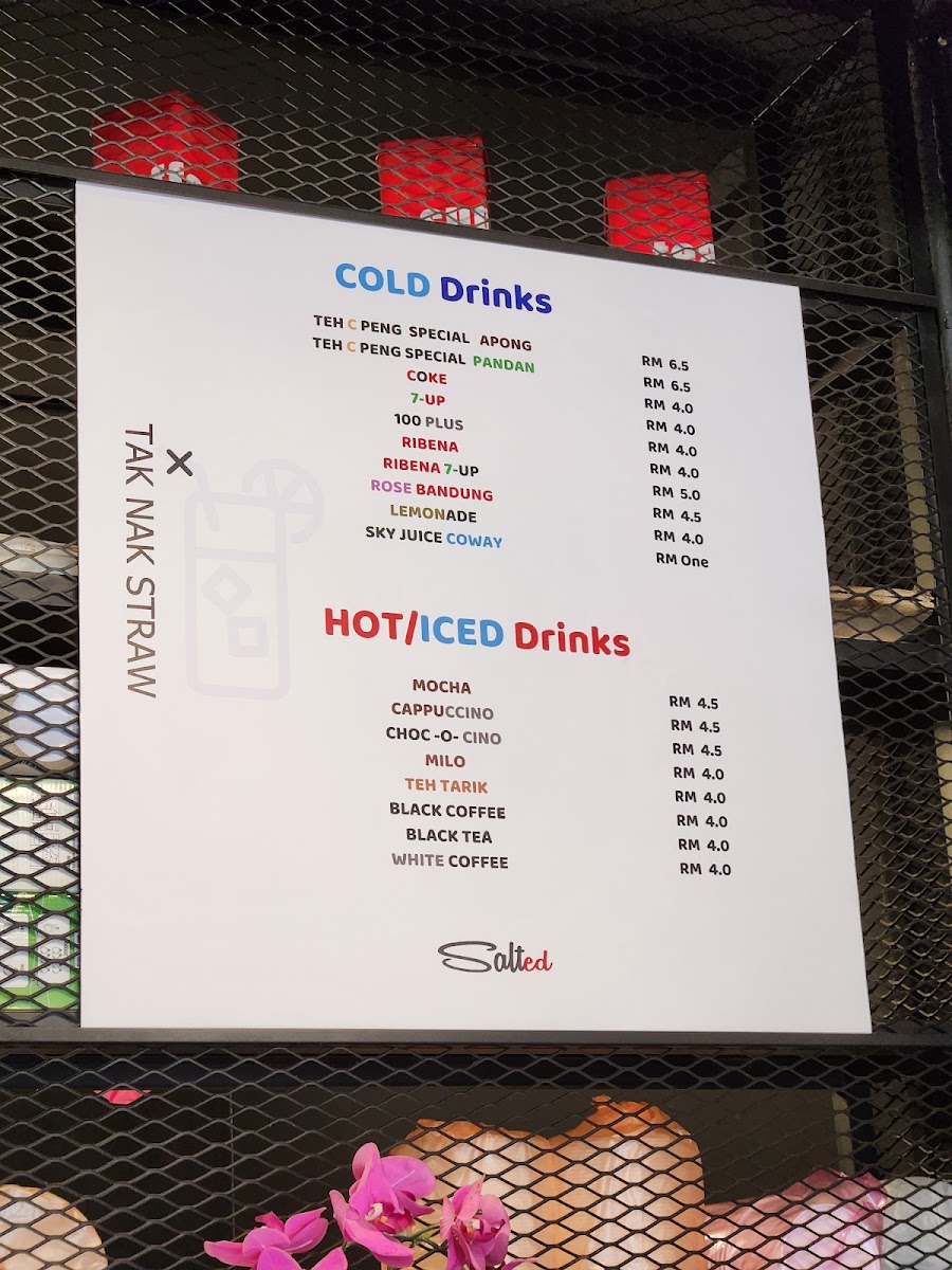 Beverages such as the Teh C Peng with Gula Apong complement the food with their mellow sweetness and refreshing qualities, making them a pleasant accompaniment during any mealtime. The atmosphere at SALTed is casual but attentive, where the food and drinks invite guests to slow down and enjoy familiar flavors presented with care.